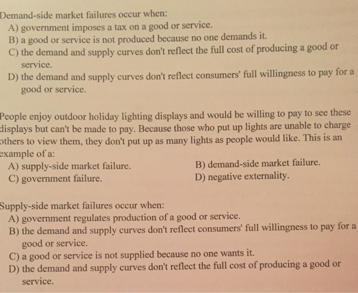 Solved Demand Side Market Failures Occur When A Government Chegg Com